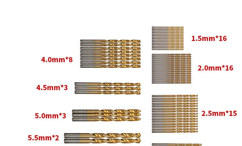 99pc Drill Set 1.5mm-10mm HSS Drill Bits Set Titanium Coated Metal Hole Grooving Drill Carpenter Woodworking Tools