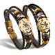 This handmade stacked bracelet features one of the twelve Zodiac signs on a round retro plate. Made of genuine raw sienna Leather, it has two braided leather cords and one main leather band. The bracelet is secured with a clasp featuring black gallstones and beads.