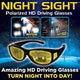 NO LONGER HAVE DIFFICULTY DRIVING AT NIGHT! NO LONGER BE BLINDED BY EXTREMELY BRIGHT LIGHTS WITH THIS NIGHT DRIVING GLASSES!