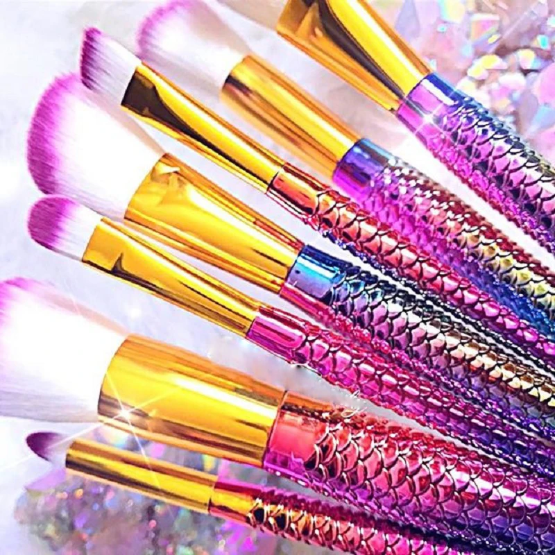 10PCS Mermaid Shape Makeup Brush Fish Scale Foundation Powder Eyeshadow Unicorn Makeup Brushes Contour Blending Cosmetic Brushes