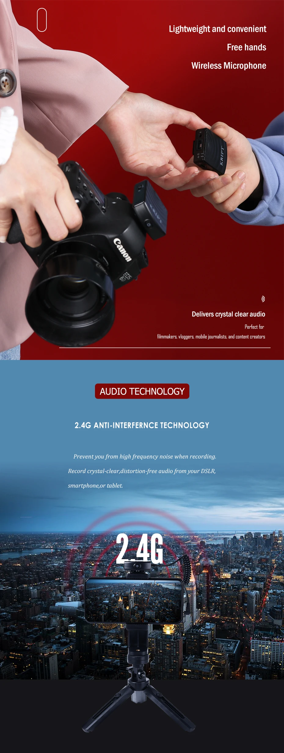 • Universal Wireless System: Record crystal-clear audio from your DSLR, camcorder, smartphone, or tablet. Perfect for filmmakers, vloggers, mobile journalists, and content creators