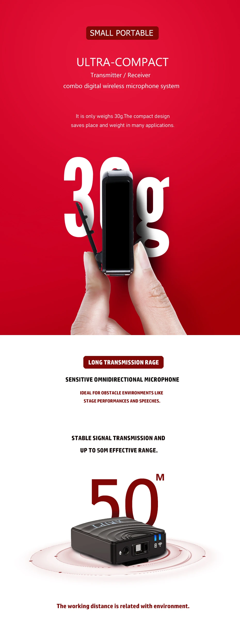 • Mini Size and clip-on Design: True Wireless Microphone Ready for Run-and-Gun.