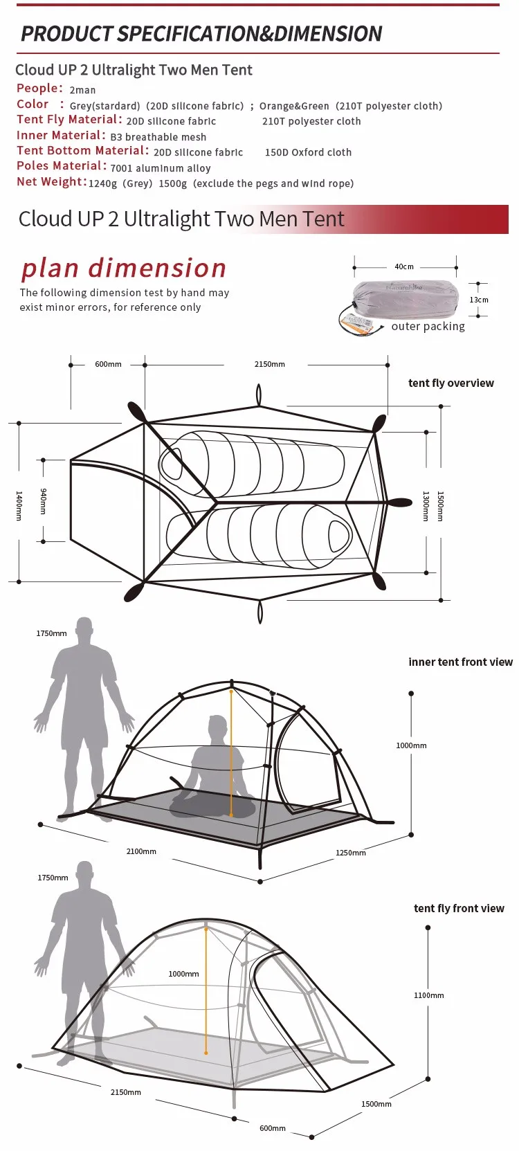 Tent fly material: 20D 380T silicone waterproof coating+ fasteners