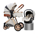 Stroller frame, 2 in 1 basket, baby safety seat, 4 wheels, armrest, basket adapter, foot cover, cup holder, cotton pad