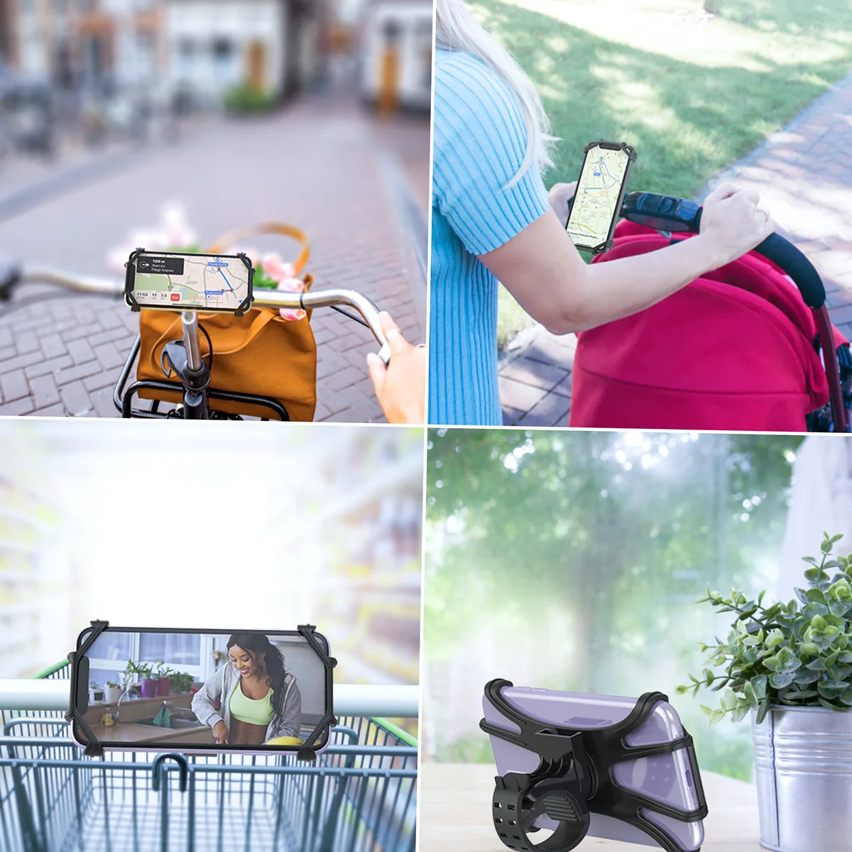 Wide Compatibility: Universal Bike, Stroller, Grocery Cart, Wheelchair, Treadmill, Motorcycle, Handlebar(0.66''- 1.68") in diameter. Made of high quality elastic silicone. Securely fit many cell phones between phone screen size(4.0''-6.5''). Compatible with iPhone 11/iPhone XS max/XS/XR/X/8 Plus/8/7Plus/7/6Plus/6, Galaxy S10/S10 Plus/S9 Plus/S8/S8 Plus/S7/Note 8, Google, Huawei Series and more.