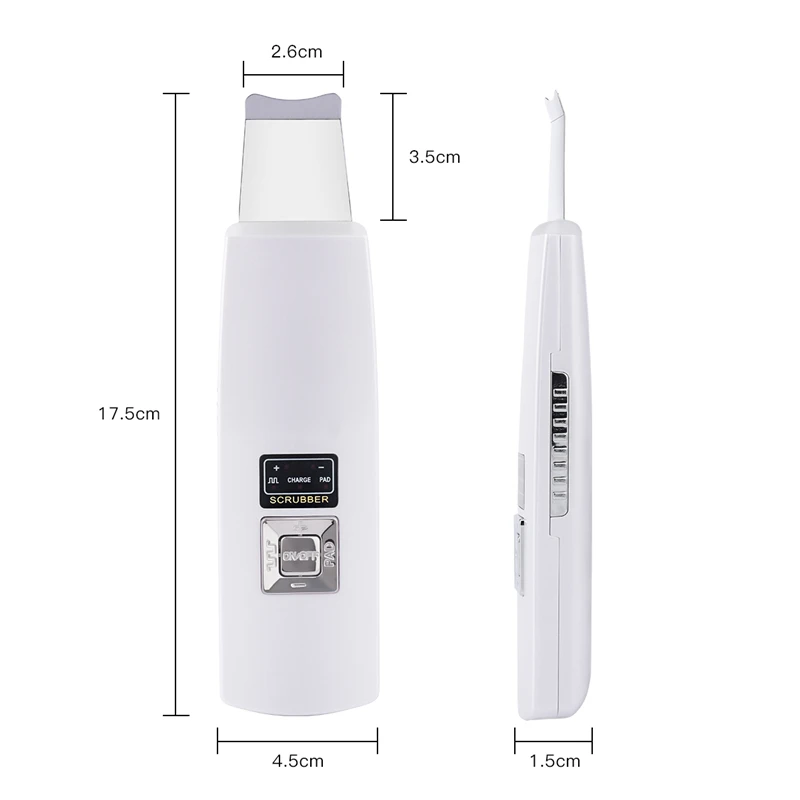Made with stainless steel blade, ultrasonic skin scrubber sends 30,000 Hz per second of ultrasonic waves that effectively loosen clogged pores and exfoliate the skin to remove dead skin cells, painlessly.